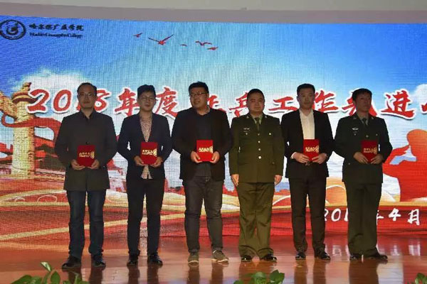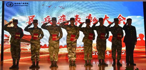 校武装部部长赵云龙代表学校宣读了《关于对2018年度征兵工作先进单位、先进个人予以表彰的决定》。出席大会的领导为获奖单位和先进个人颁发了奖状和荣誉证书。