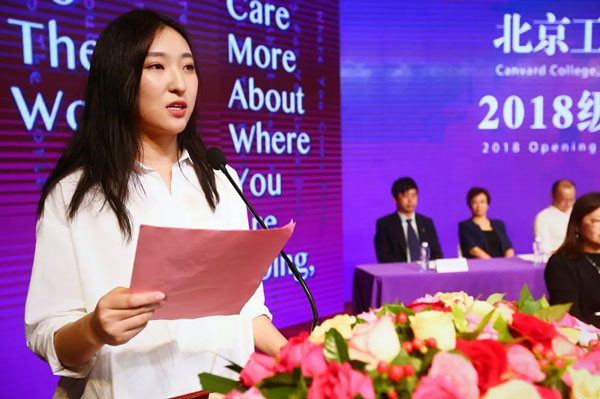8时20分,随着党委书记张晓磊的郑重宣布,北京工商大学嘉华学院2018级新生开学典礼正式开始。