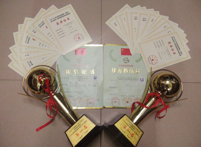 2018-2019年全国啦啦操联赛(云南站)暨云南省第二届校园健美操啦啦操锦标赛于11月9–11日在云南师范大学飞碟体育馆进行,我校健美操队参加了此次比赛体育院校组的比赛,经过两天的角逐,我校健美操队获得两个健美操项目冠军、一个啦啦操项目第四名的优异成绩,为学校取得了荣誉。同时教练员赵化斌老师获得“优秀教练员”的荣誉称号。
