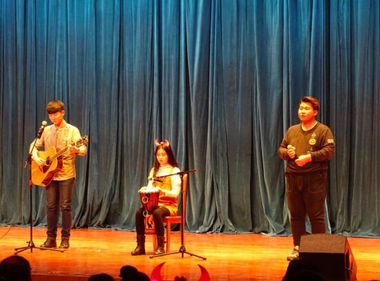 歌声悠扬、演绎精彩,节目中间,四名同学带着愿望箱亲临会场,带着同学们的愿望来到了舞台中间,将晚会带入了另一个高潮。