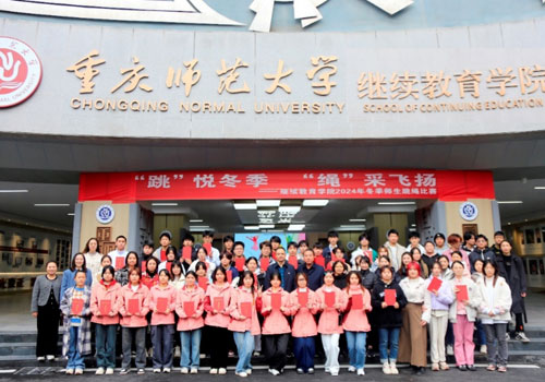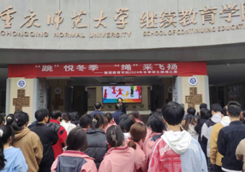为了提高学生的身体素质,营造浓厚的学院文化氛围, 2024年11月20日下午,继续教育学院在沙坪坝校区第一教学楼大厅举行“跳”悦冬季 “绳”采飞扬2024年冬季师生跳绳比赛,学院党政领导、全体师生参加。学院党委副书记、纪委书记朱锦秀致辞,鼓励师生积极参与,赛出风格,赛出水平,预祝参赛选手们都取得优异的成绩。